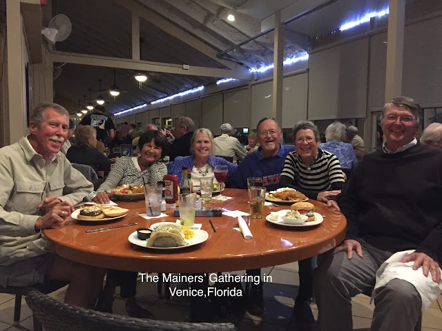 Next stop....Venice. Yes, Florida. Long-time friends Dale and Paula have a home in nearby Englewood in the winter and a cabin on Bottle Lake in the summer. We’ve been friends since the mid-’80’s when Paula joined us on Deer Isle to work with students. On Dec. 2015 we joined them at their time-share condo in Belize for a week. So many stories... so much fun. To make that Venice stop even more lively, Tricia and Rob on “Linda Jean” docked behind us and we three Maine couples dined together and had a great time swapping stories. We met Tricia and Rob at The City of Fort Myers Yacht Basin last Feb. and again at Morehead City, N.C. late in April as we Looped up the East Coast. We “clicked” right away and have been keeping in touch ever since. In fact, they will be on a dock near us at The Yacht Basin for the month of February.
